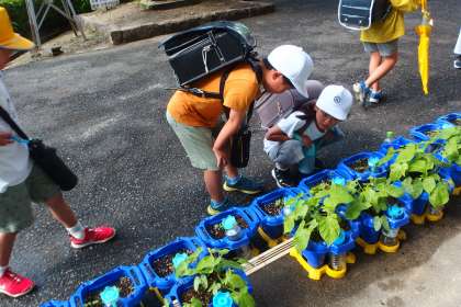 1年生、2年生、3年生は、毎朝欠かさずに水やりをしています。