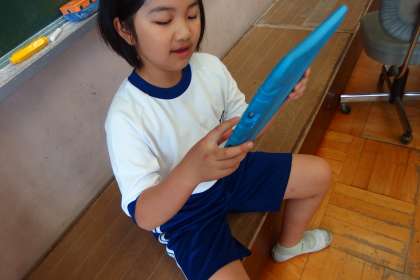 タブレットで復習をしている4年生です。