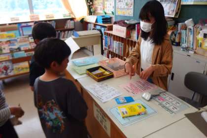 6月8日の東広瀬小学校(2) 公開日 2023/06/11 更新日 2023/06/11 特別活動 図書システム用のパソコンを操作して、貸し出しや返却の手続きの仕事をする図書委員です。 おいでん月間が始まり、図書室は朝から大盛況です。