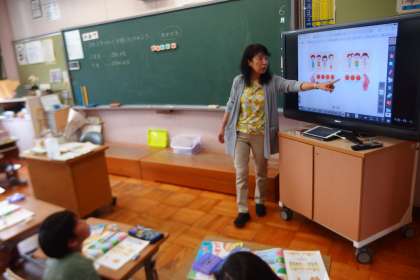 6月12日の東広瀬小学校(25) 公開日 2023/06/13 更新日 2023/06/13 活動の様子 1年生の算数の授業です。 先生がタブレットからデジタル教科書を提示して計算の仕方を開設しています。