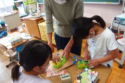 模型の組み立てを通して、電気について学んでいます。