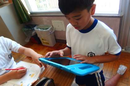 タブレットのアプリで復習をしているところです。