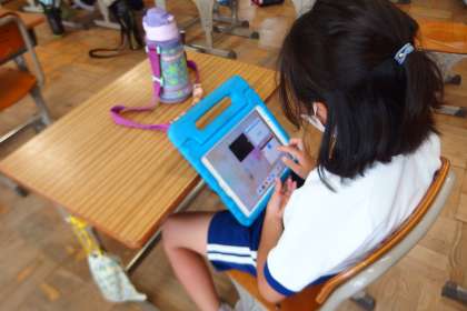 タブレットで復習をしている4年生です。