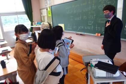 6月14日の東広瀬小学校(89) 公開日 2023/06/17 更新日 2023/06/17 活動の様子 5年生の英語の授業です。 want to を使った文の英会話がスムーズにできるように、メモをタブレットに準備して活動しました。