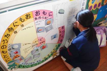 給食の献立情報や栄養情報を記入している保健給食委員です。