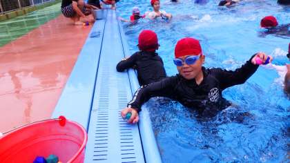 水の中でも助け合い、支え合い、学び合いです。