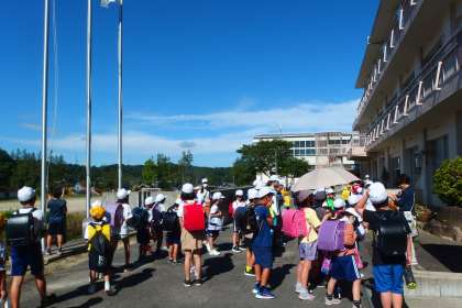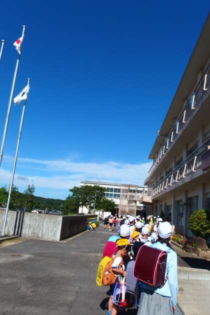 16日の登校の様子です。 青空のさわやかな朝でした。