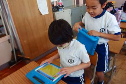 英会話活動のサポートのためにタブレットを活用しています。