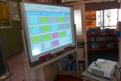 6月16日の東広瀬小学校(18) 公開日 2023/06/18 更新日 2023/06/18 活動の様子 4年生の外国語活動の授業です。 英会話活動のサポートのためにタブレットを活用しました。 一人一人のメモをスクリーンに映して振り返りをしました。