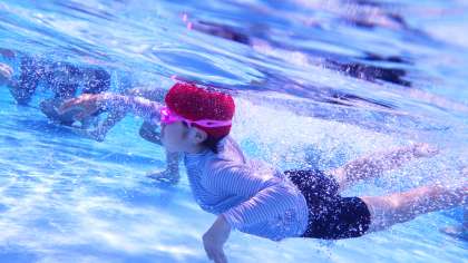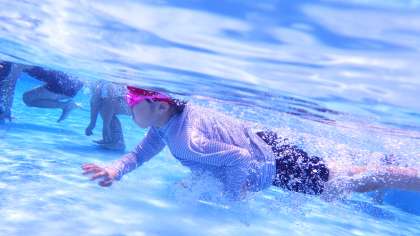 3年生、4年生の水泳の授業です。