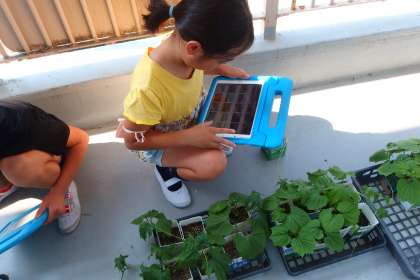 6月19日の東広瀬小学校(5) 公開日 2023/06/19 更新日 2023/06/19 活動の様子 4年生の理科の授業で記入しているツルレイシ(ゴーヤ)の栽培日記のために、写真をタブレットで撮影しています。
