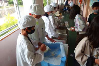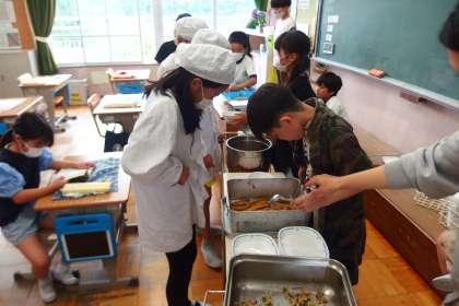 給食の配膳の様子です。