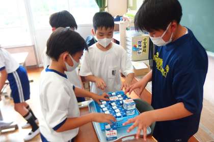 給食の配膳の様子です。