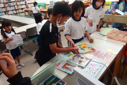 6月23日の東広瀬小学校(2) 公開日 2023/06/25 更新日 2023/06/25 特別活動 図書システム用のパソコンを操作して、貸し出しや返却の手続きの仕事をする図書委員です。 おいでん月間が始まり、図書室は朝から大盛況です。