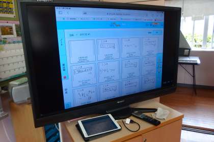 1年生がタブレットの発表ノートを使う練習をしていました。