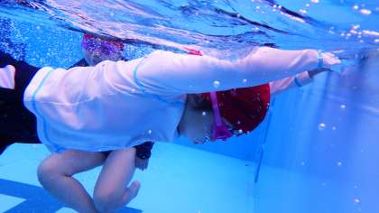 1年生、2年生の水泳の授業です。 学校のデジタルカメラは水に沈めても大丈夫です。