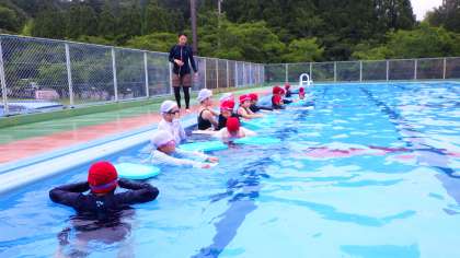 水の中でも助け合い、支え合い、学び合いです。