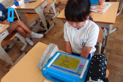 6月27日の東広瀬小学校(13) 公開日 2023/06/28 更新日 2023/06/28 活動の様子 3年生の外国語活動の授業です。 ロック・シザーズ・ペイパー(じゃんけん)の活動を盛り上げるために、タブレットの利用で工夫を加えました。