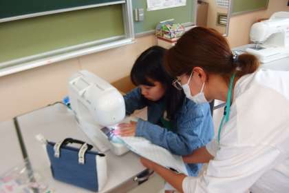 広瀬っ子サポーターの方々がミシン実習のフォローをしてくださいました。