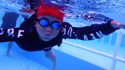 3年生、4年生の水泳の授業です。