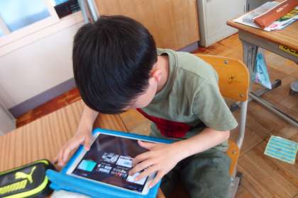 パラアスリートのことをタブレットを使って調べています。