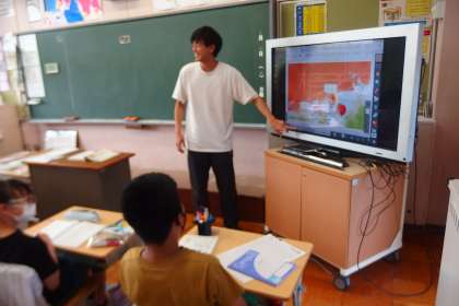 6年生の算数の授業です。 デジタル教科書から問題を提示して、全員で解き方を考えていきます。