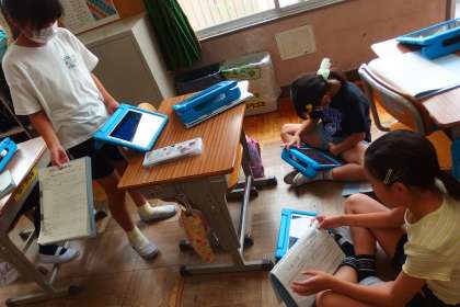 各自がそれぞれでテーマを設定して調べを進め、タブレットのシンプルプレゼンにまとめています。