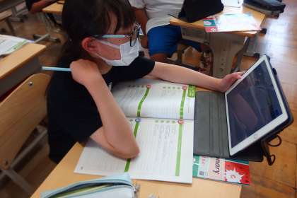 6月28日の東広瀬小学校(45) 公開日 2023/07/01 更新日 2023/07/01 活動の様子 6年生の英語の授業です。 一人一人が各自で決めた国について、その国で「見ることができる場所・もの」や「食べることのできるもの」を、canを使った英文で表現します。 それらの英語表現をタブレットにまとめているところです。