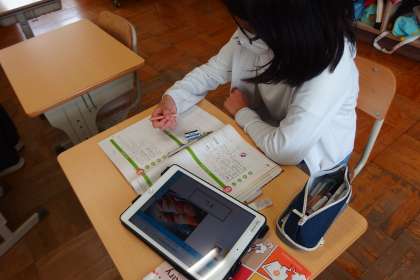 6月28日の東広瀬小学校(49) 公開日 2023/07/01 更新日 2023/07/01 活動の様子 6年生の英語の授業です。 一人一人が各自で決めた国について、その国で「見ることができる場所・もの」や「食べることのできるもの」を、canを使った英文で表現します。 それらの英語表現をタブレットにまとめているところです。