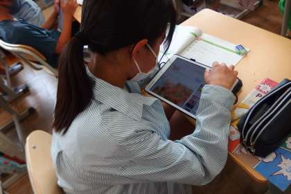 それらの英語表現をタブレットにまとめているところです。