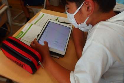 6月28日の東広瀬小学校(51) 公開日 2023/07/01 更新日 2023/07/01 活動の様子 6年生の英語の授業です。 一人一人が各自で決めた国について、その国で「見ることができる場所・もの」や「食べることのできるもの」を、canを使った英文で表現します。 それらの英語表現をタブレットにまとめているところです。
