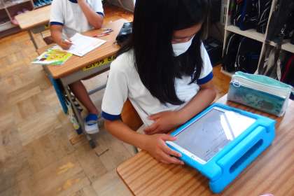 デジタルドリル(Qubena)で復習をしているところです。