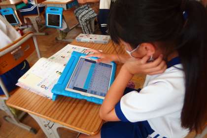 4年生の算数の授業です。 計算の進め方を考え、タブレットに記入していました。