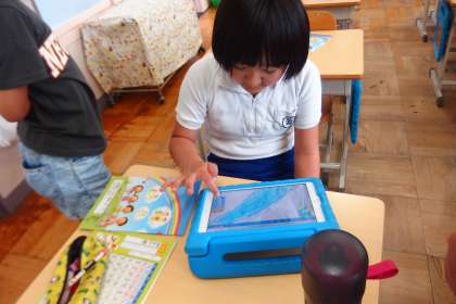 3年生の図工の授業です。 タブレットで川の様子を表現していました。