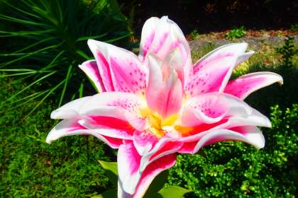 校地内にユリが咲き始めたので、タブレットで撮影しました。 いま現在、3種類のユリが咲いています。