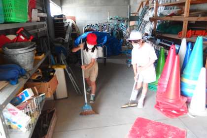 ファミリー清掃の様子です。 縦割りのペアで助け合い。教え合い。学び合いの活動です。