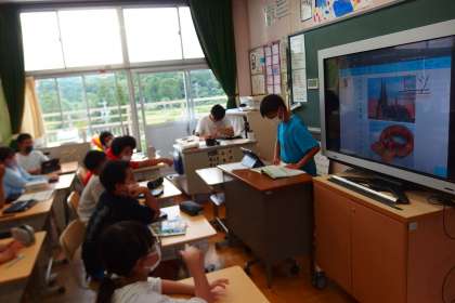 7月5日の東広瀬小学校(89) 公開日 2023/07/10 更新日 2023/07/10 活動の様子 6年生の英語の授業です。 一人一人が調べた国のことをタブレットにまとめました。 それを発表しているところです。