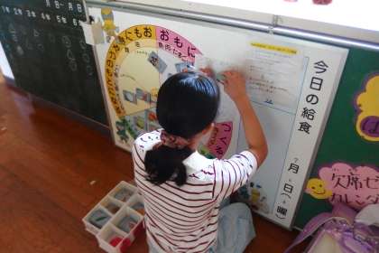 給食の献立情報と栄養情報を記入する保健給食委員です。