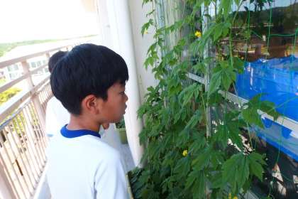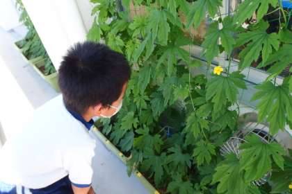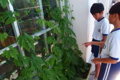 7月6日の東広瀬小学校(4) 公開日 2023/07/10 更新日 2023/07/10 活動の様子 4年生の育てているツルレイシ(ゴーヤ)を前にして、それそれの株がより高くまで育っているかを競い合っていました。 この比べ合い、競い合いも小さな小さな学び合いの姿です。