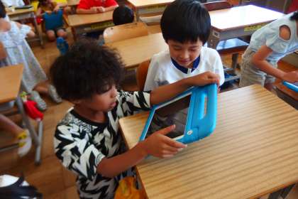 タブレットを上手に活用して、対話の手助けとしていました。