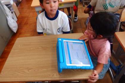タブレットを上手に活用して、対話の手助けとしていました。