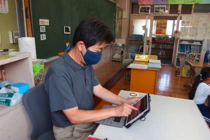 タブレットでデジタルドリルのワークブックを作成しているところです。