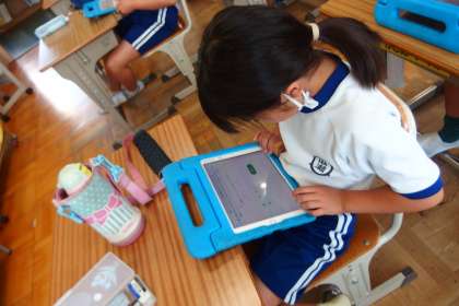 タブレットでデジタルドリル(Qubena)を使って学習しています。
