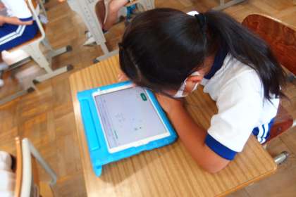 タブレットでデジタルドリル(Qubena)を使って学習しています。