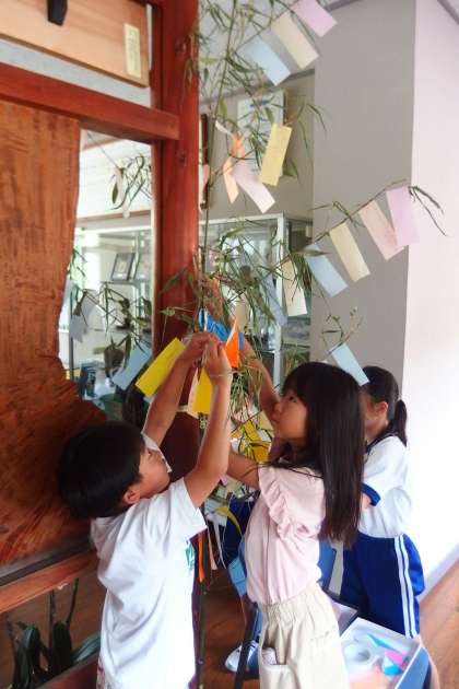 7月7日は七夕でした。 全校のみなさんが願い事を書いていました。