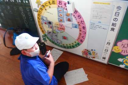 給食の献立情報や栄養情報を記入している保健給食委員です。