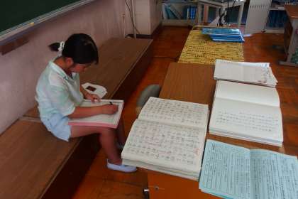 課題のチェックをしている4年生です。