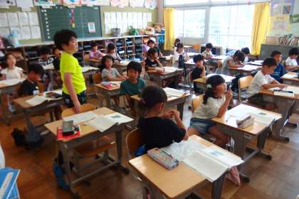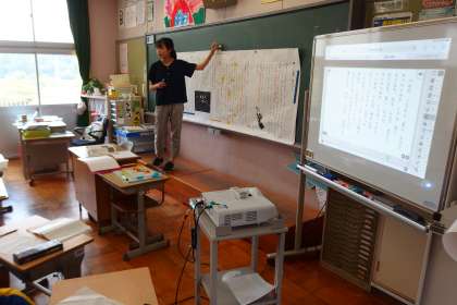 2年生の国語の授業です。 スクリーンに映っているのはデジタル教科書です。