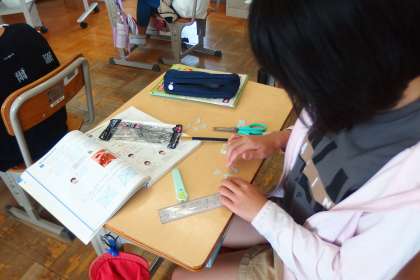 7月12日の東広瀬小学校(28) 公開日 2023/07/17 更新日 2023/07/17 活動の様子 5年生の算数の授業です。 三角形を4つ組み合わせて、平行四辺形を組み立てています。 それぞれの方法で、それぞれの工夫で、結論を導き出していきます。