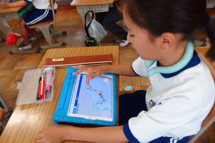 7月13日の東広瀬小学校(10) 公開日 2023/07/18 更新日 2023/07/18 活動の様子 タブレットを使って気象庁のウェブサイトを閲覧しています。 理科で既習の雲の様子や動きを確認したり、災害から身を守るための情報を入手する方法を見たりしています。